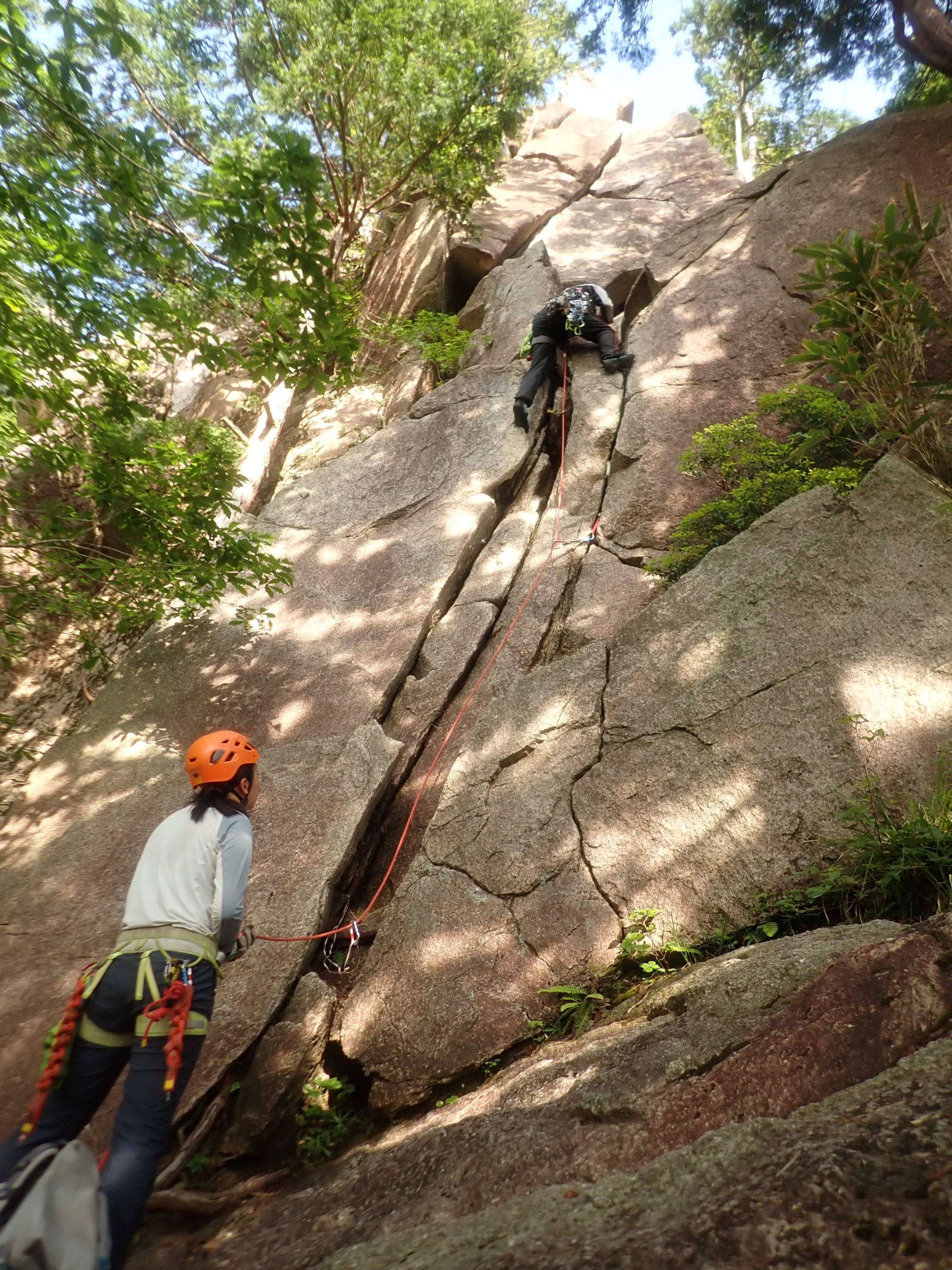 御在所 藤内壁 クライミング X Facebook はてブ Pocket LINE コピー 2022.06.202022.08.27 日程・行動概要:2022年6月4日 前尾根、5日 一ノ壁 メンバー:K岡、MKさん、文一、スナメリ 2,3回生で御在所の藤内壁に行った。初日は前尾根のP6からP2(ヤグラ)を登攀。2日目は前尾根P7を登った後、一ノ壁でクライミングをした。 前尾根P3にロープを伸ばす。 前尾根P7下部を登る。 一ノ壁2ルート。高度感があり楽しい。 記:K岡