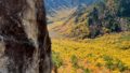 岩場からジャンプするクラT